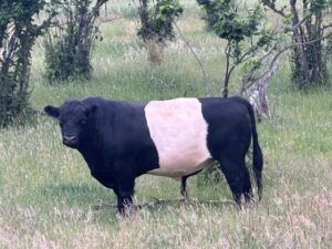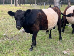 “Jameson Park Spencer”, owned by Idavale Belted Galloways since February 2022. Calm, docile bull producing beautiful calves. Reluctant sale due to the need for new bloodline bull. Price on enquiry.