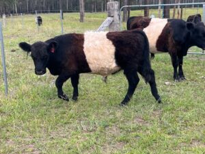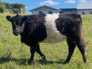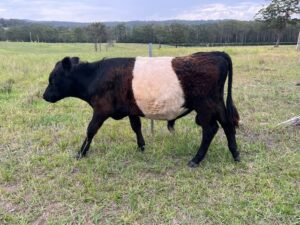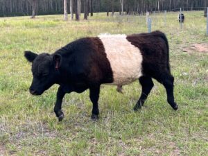 “Jameson Park Spencer”, owned by Idavale Belted Galloways since February 2022. Calm, docile bull producing beautiful calves. Reluctant sale due to the need for new bloodline bull. Price on enquiry.